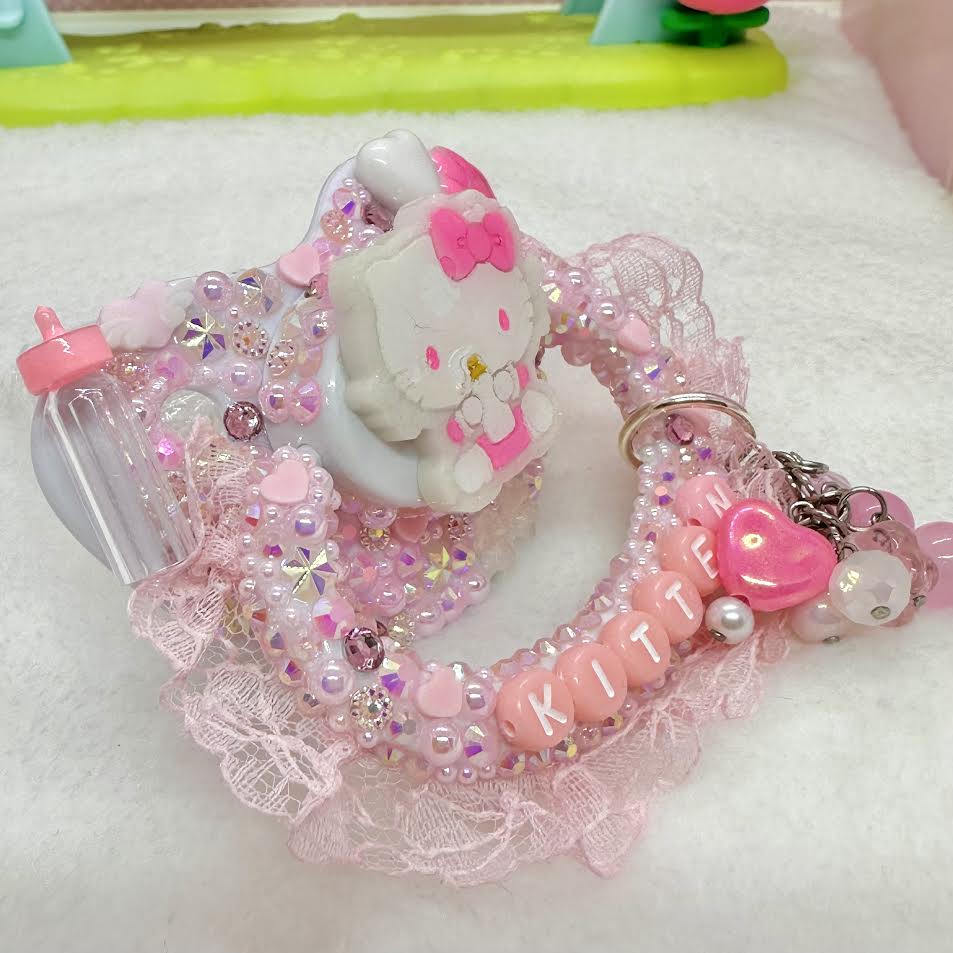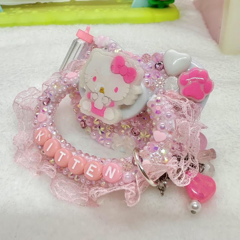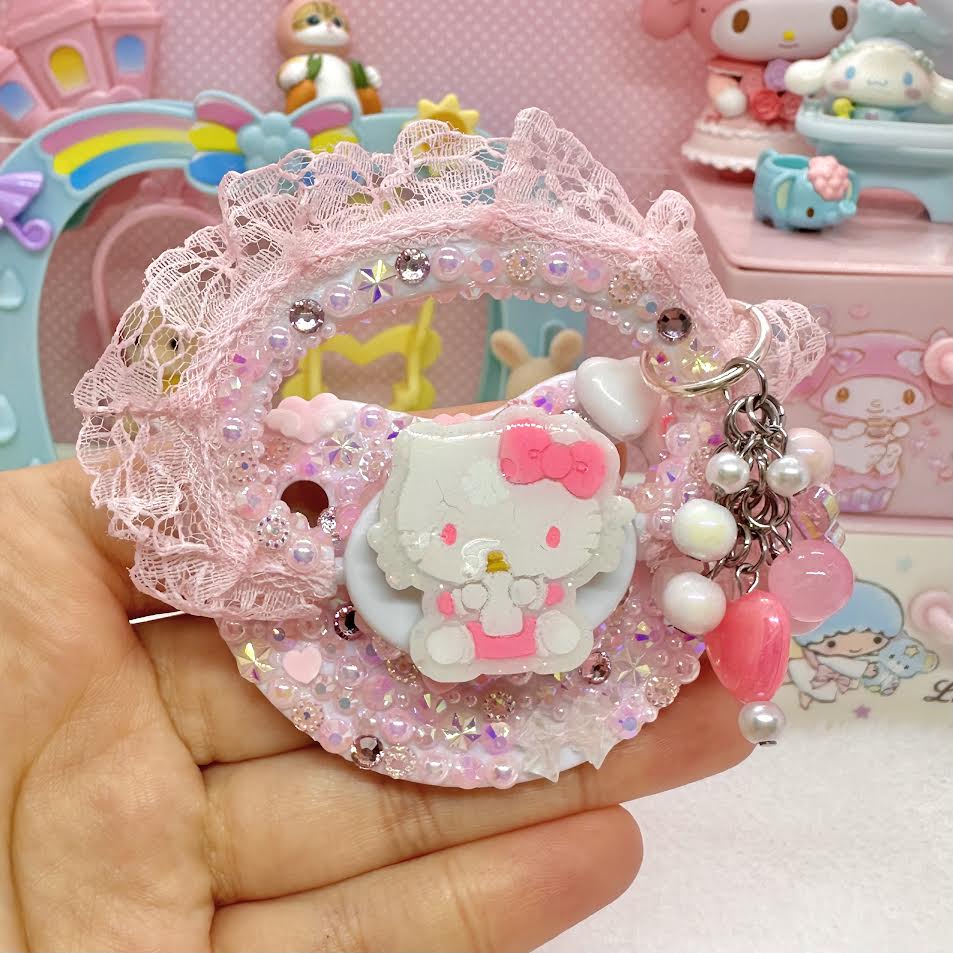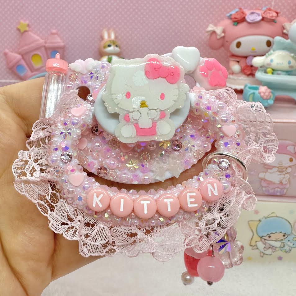 ♡baby kitty lace handle fully encrusted deco adult pacifier with handle charm!