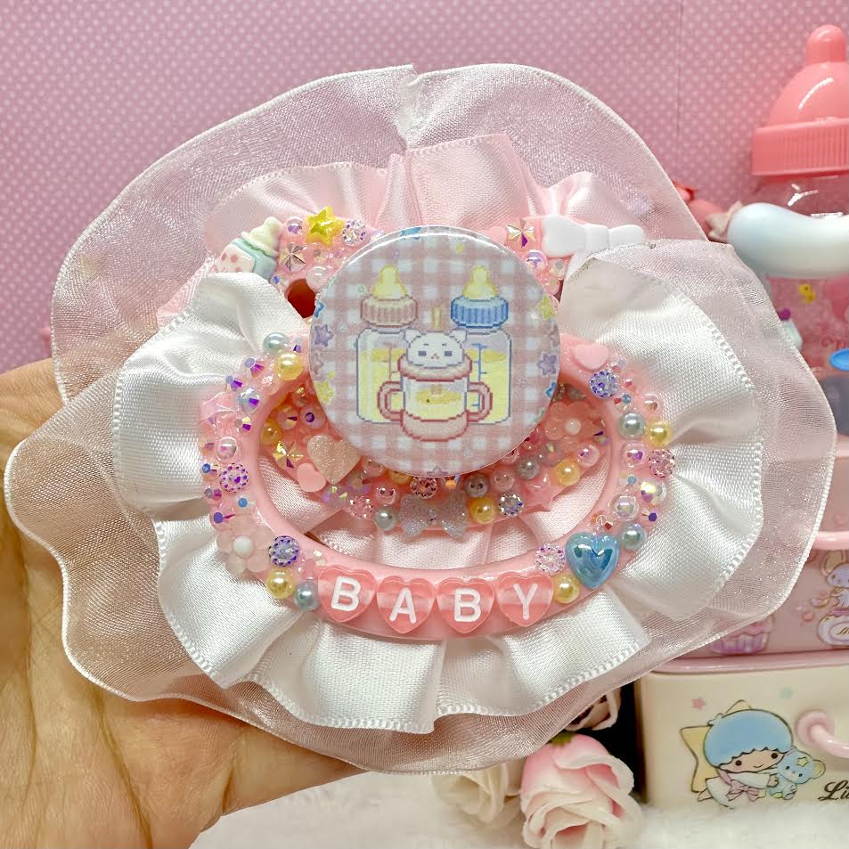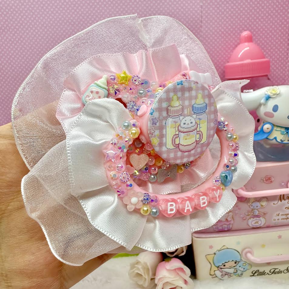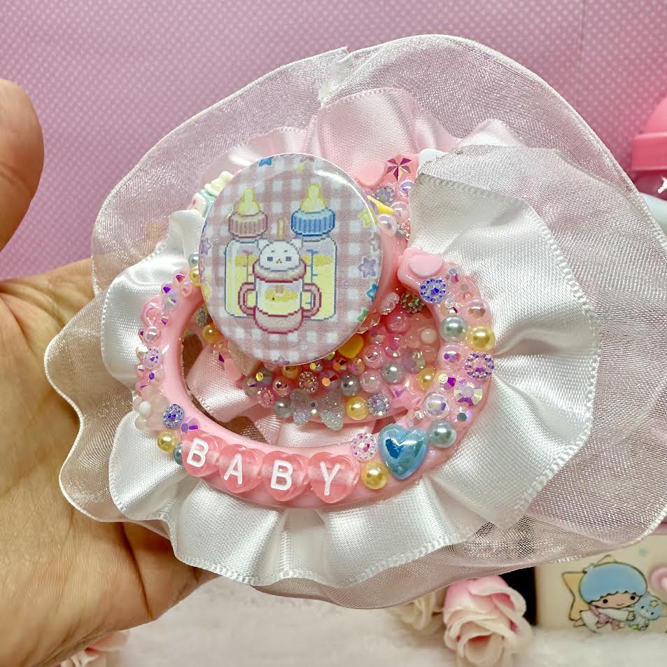 ♡babycore pastel bottles lace ruffles & handle adult pacifier
