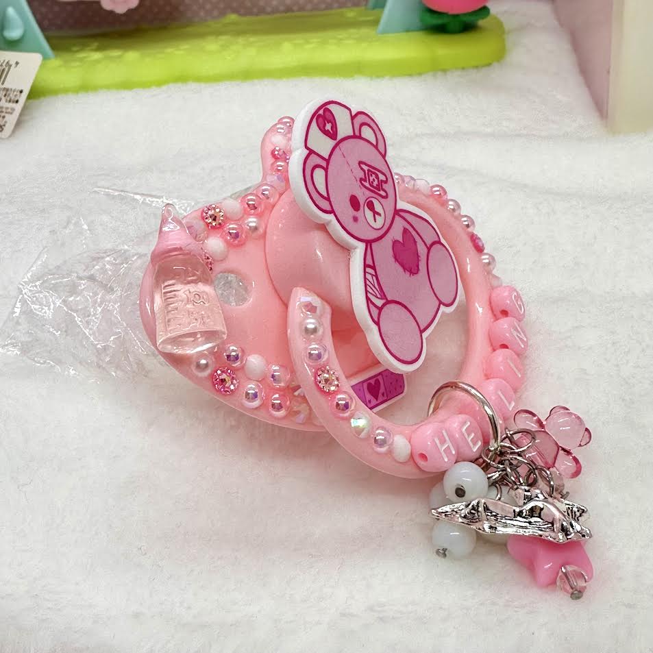 ♡healing teddy bear nurse deco adult pacifier with handle charm!
