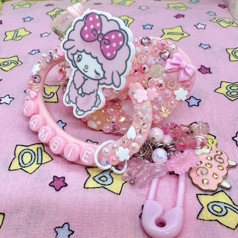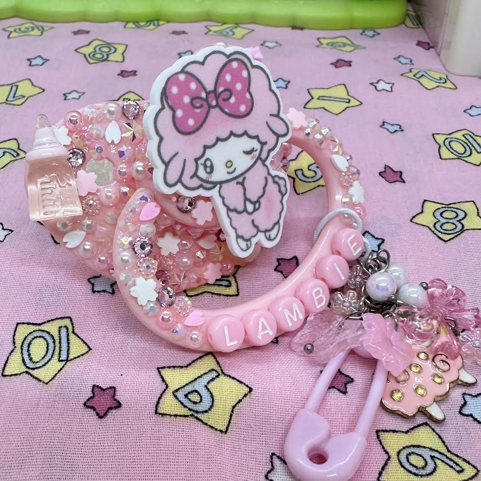 ♡pink sakura cherry blossom lamby deco adult pacifier with handle charm!