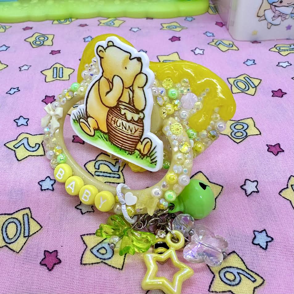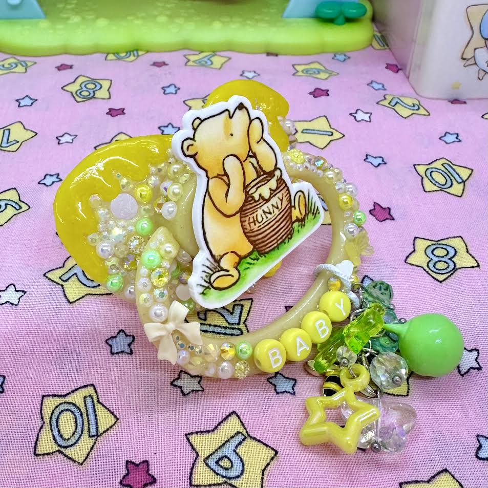 ♡yellow gold honey drip winnie deco adult pacifier!l with handle charm!